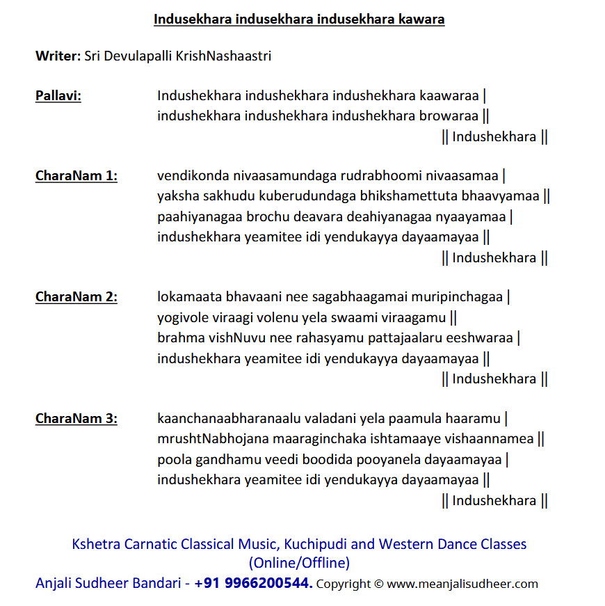 Click here for pdf Indusekhara indusekhara indusekhara kawara lyrics in English
